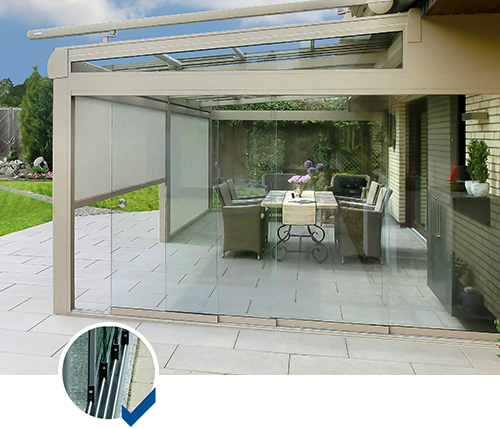 Die Seitenverglasungen sind mit der Vitello-Flex-Serie und Vacanza-Serie kombinierbar und individuell auf Maß gefertigt. Auf diese Weise haben Sie eine preiswerte Alternative zum Wintergarten.